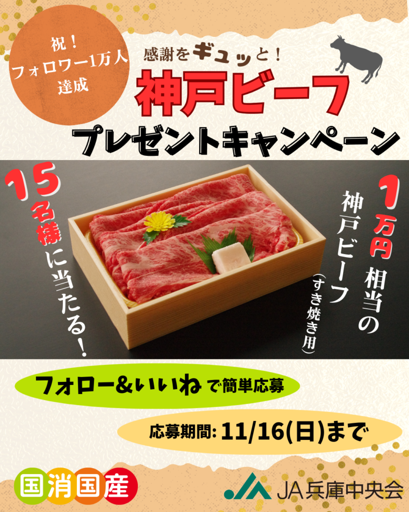 JA兵庫中央会は、9月16日から11月16日までに期間、インスタグラムを活用したキャンペーンを実施しています。